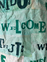 These two prints were made intuitively whilst working on the welcome imagery for the buoy and the skyscraper imagery for the River Thames. People and goods arriving and the question of exactly who and what is welcome and on what terms is a question as old as humanity, I'm sure. The idea of taking the word welcome and distorting it played into the idea of a distorted and possibly insincere welcome.